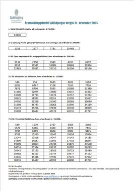Dregið var í Áramótahappdrætti Sjálfsbjargar þann 31. desember síðastliðinn. Vinningaskrána má sjá hér. Hægt er að nálgast vinninga gegn framvísun miða á skrifstofu Sjálfsbjargar landssambands hreyfihamlaðra að Hátúni 12 vesturinngangi (inngangur 4), 105 Reykjavík. Skrifstofan er opin milli kl. 10:00 og 14:00 alla virka daga.